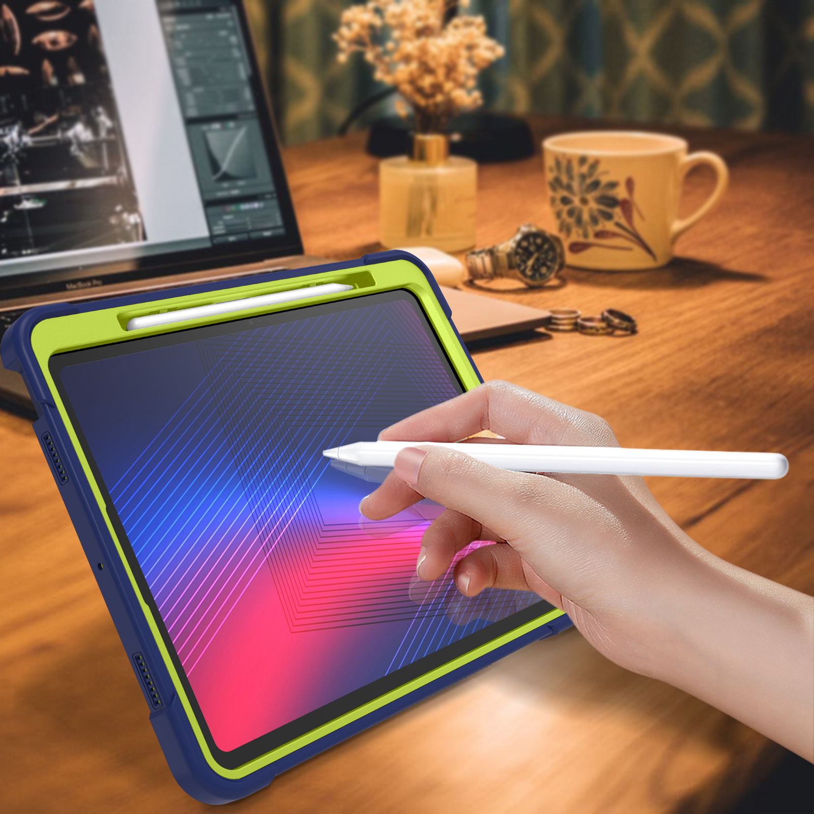 · With a pencil holder for your Apple Pencil