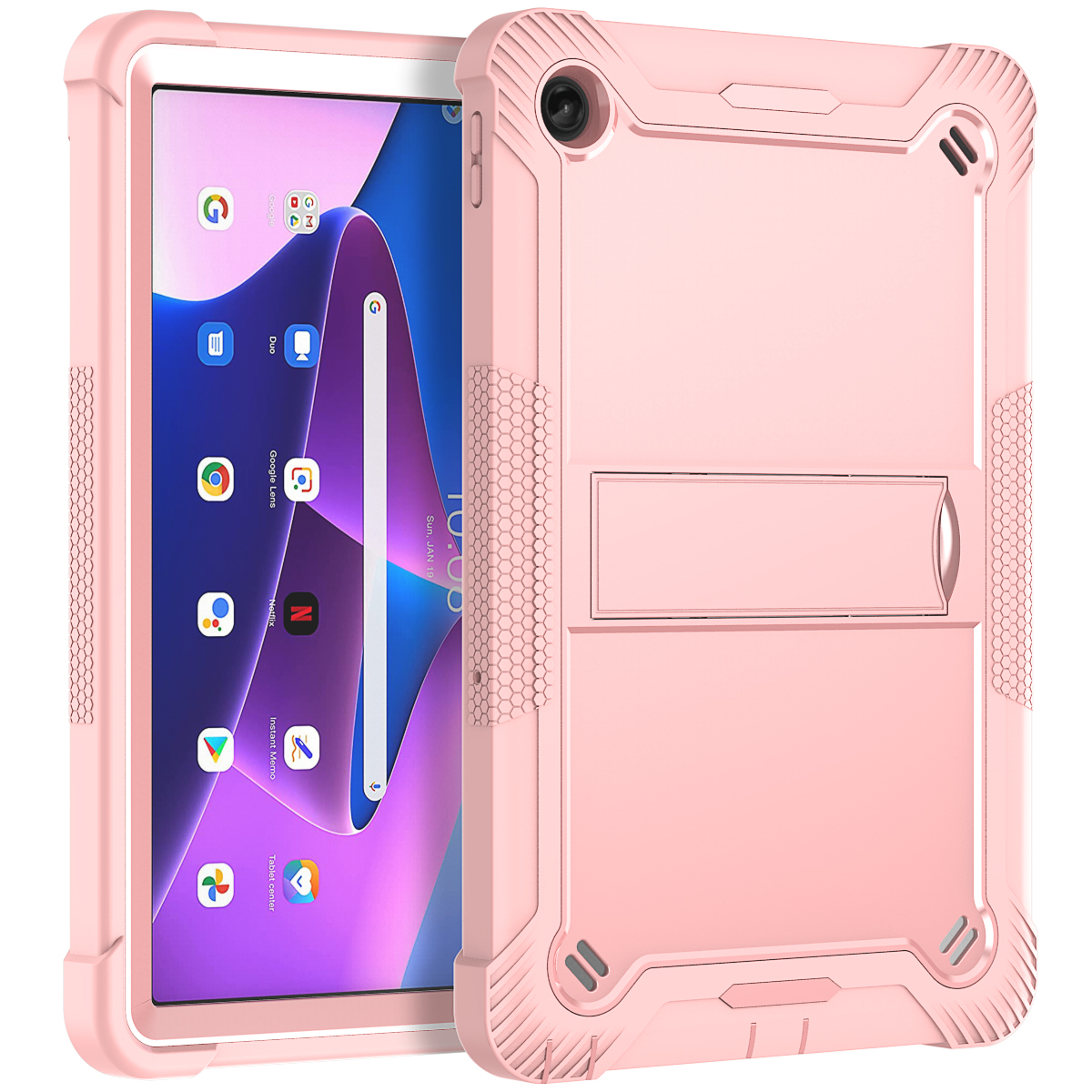 This Heavy Duty Shockproof Silicone Case for Lenovo Tab M10 Plus Gen3 (2022)/TB223FC/TB226XC 10.6 inch is an amazing, multifunctional case that protects your brand-new Pad at all costs. The heavy-duty case even has a built-in kickstand for your convenience.