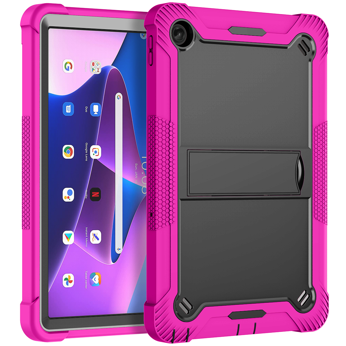 This Heavy Duty Shockproof Silicone Case for Lenovo Tab M10 Plus Gen3 (2022)/TB223FC/TB226XC 10.6 inch is an amazing, multifunctional case that protects your brand-new Pad at all costs. The heavy-duty case even has a built-in kickstand for your convenience.