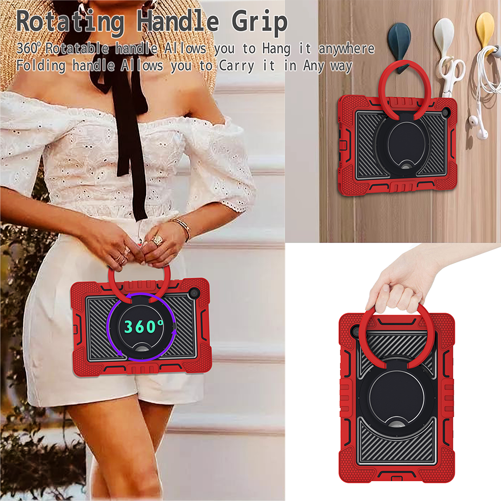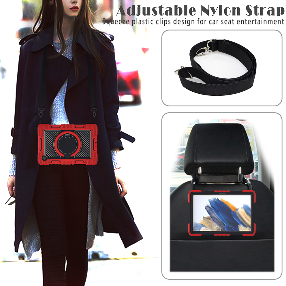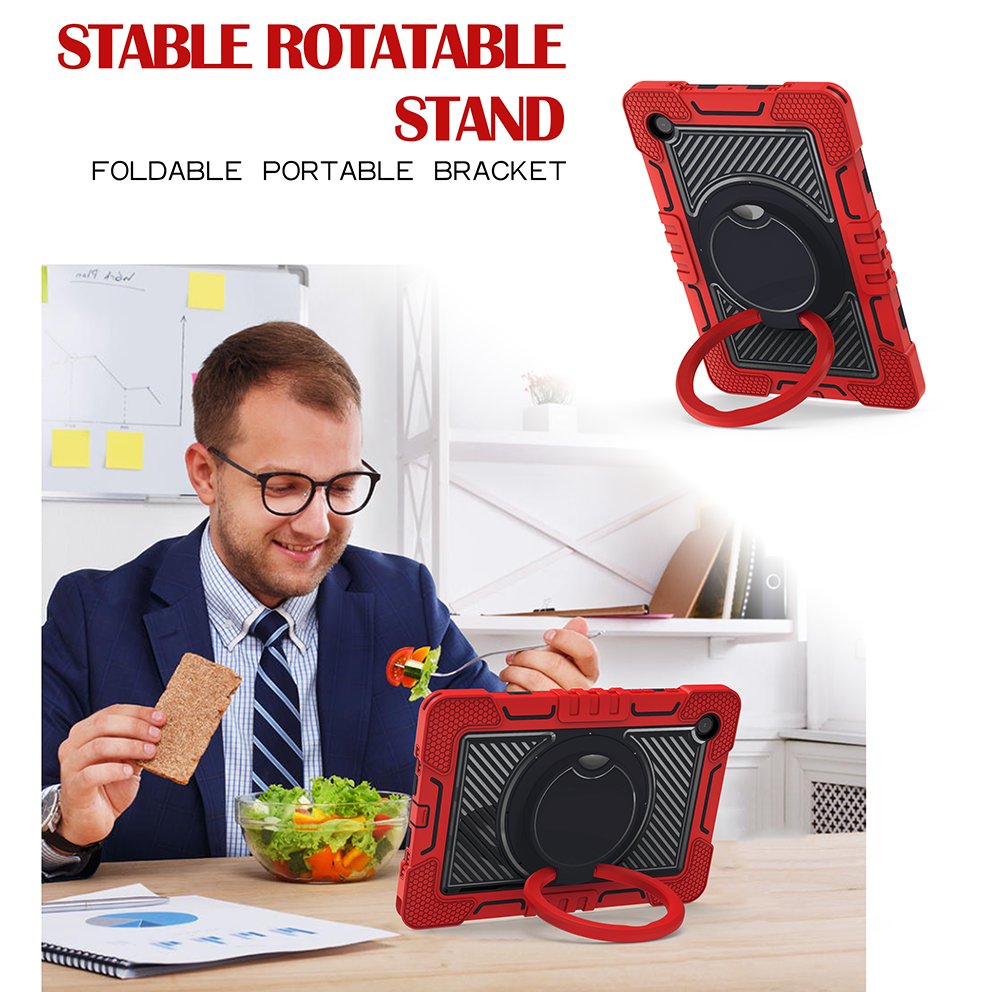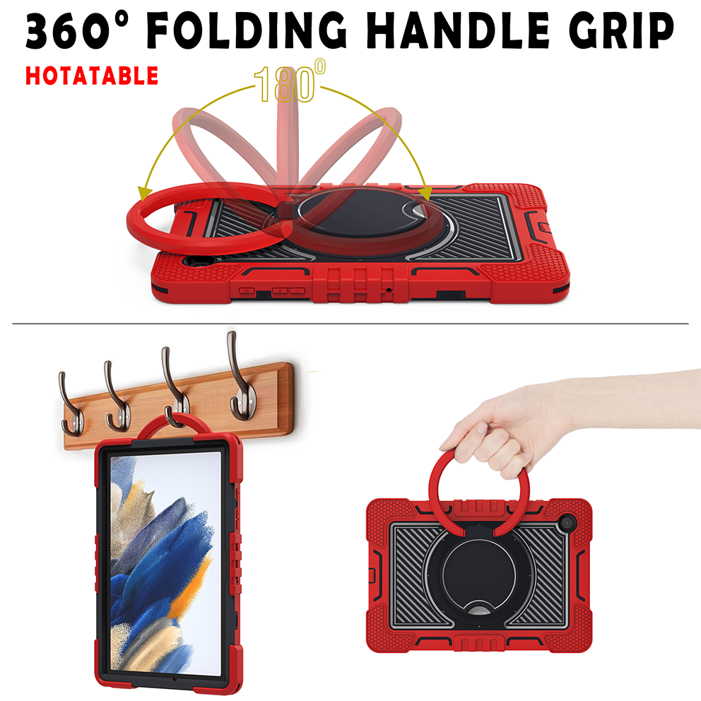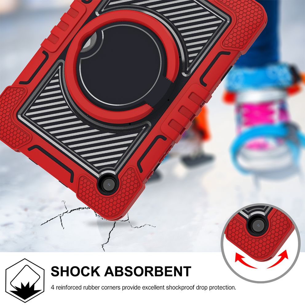 Samsung Tab A8 10.5″ (X200/X205) Rugged Case with Rotating Ring Stand - Red & Black
