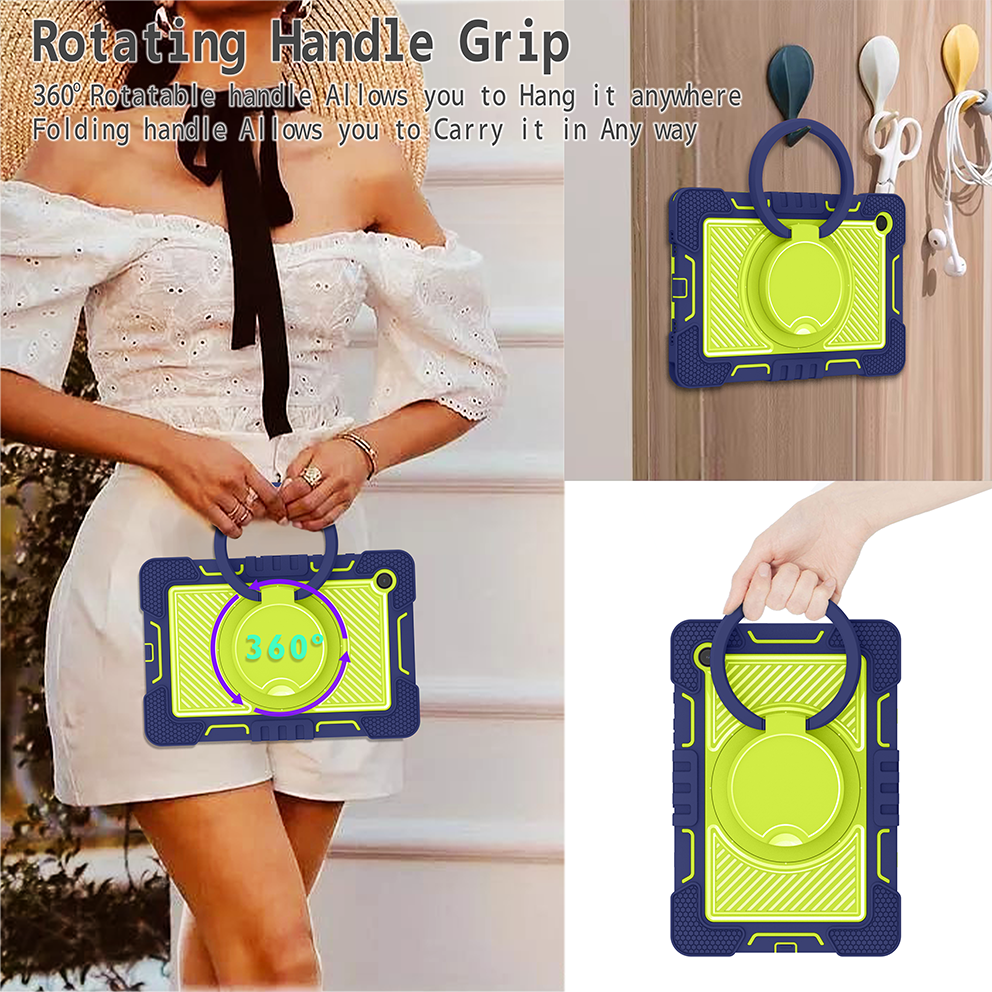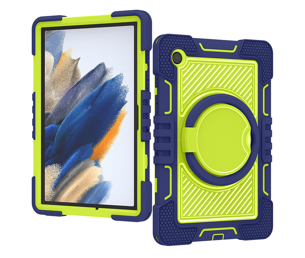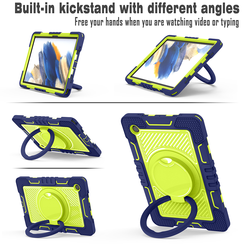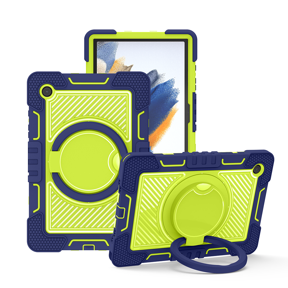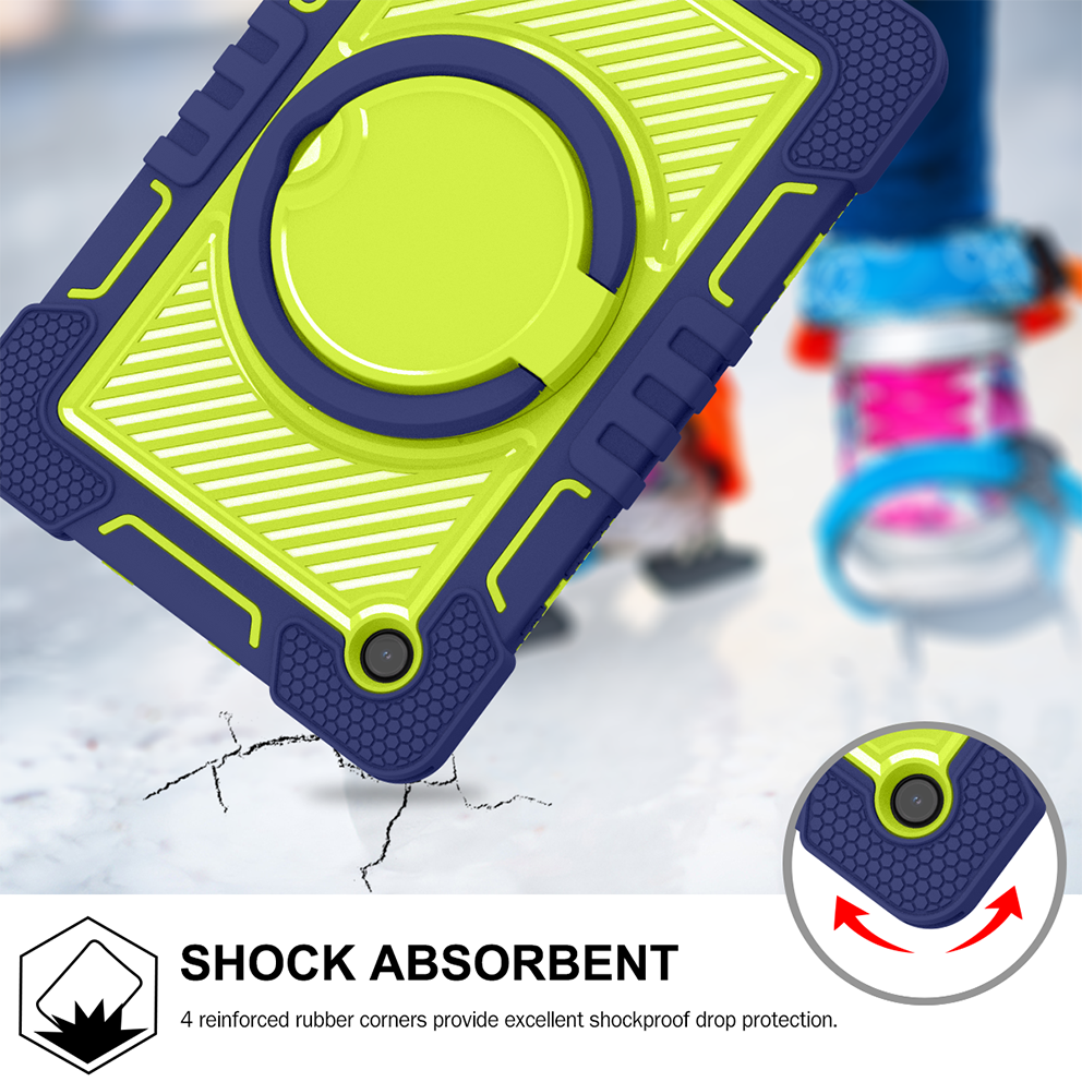 Samsung Tab A8 10.5″ (X200/X205) Rugged Protective Case with 360° Rotating Ring - Navy Blue & Yellow-Green