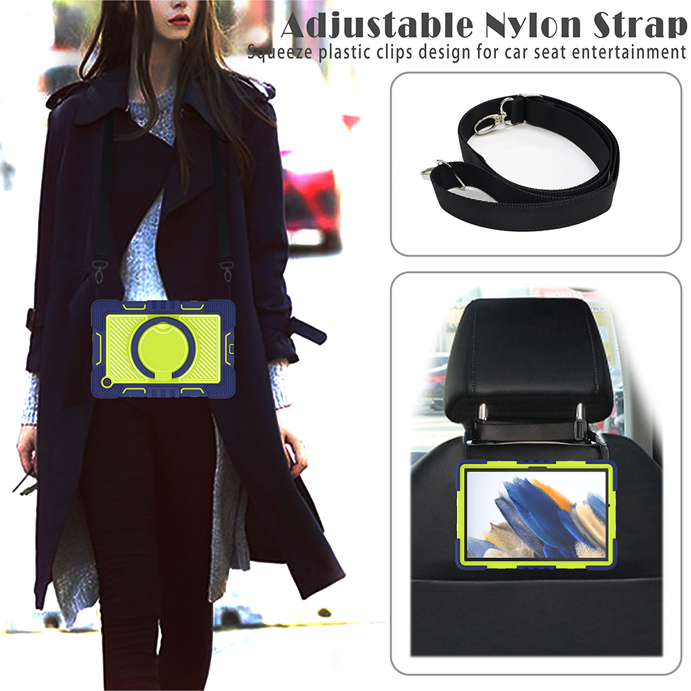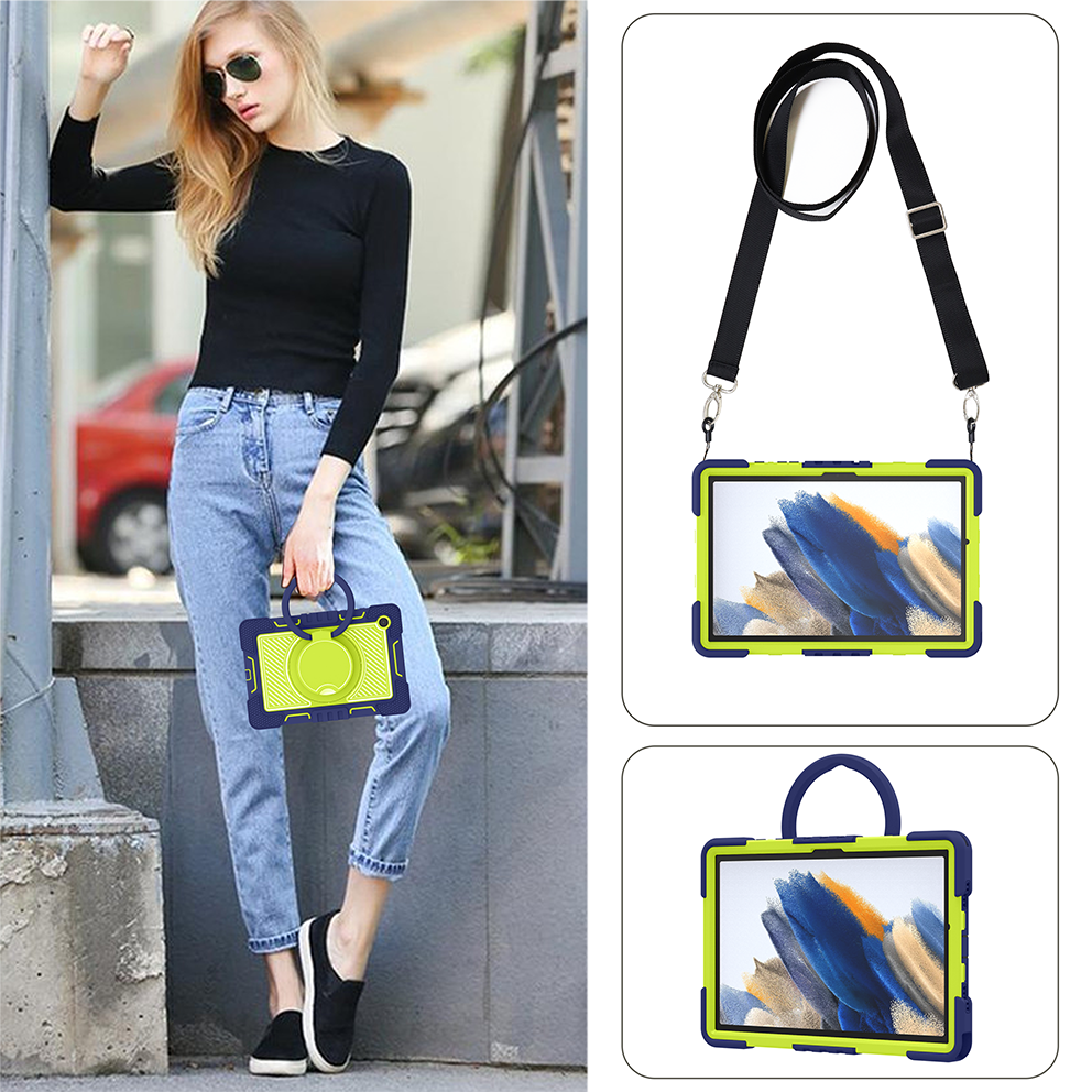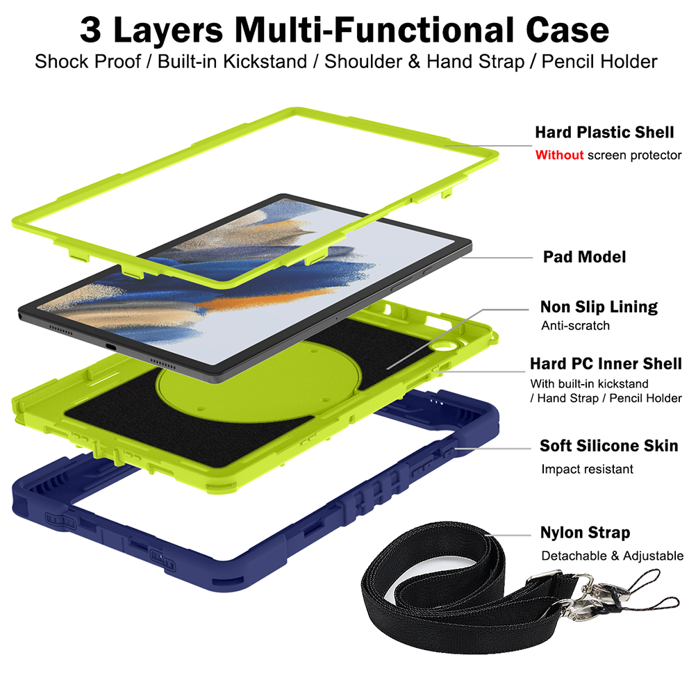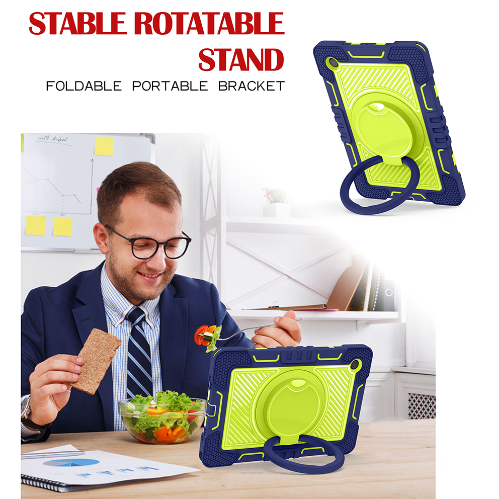 Samsung Tab A8 10.5″ (X200/X205) Rugged Protective Case with 360° Rotating Ring - Navy Blue & Yellow-Green